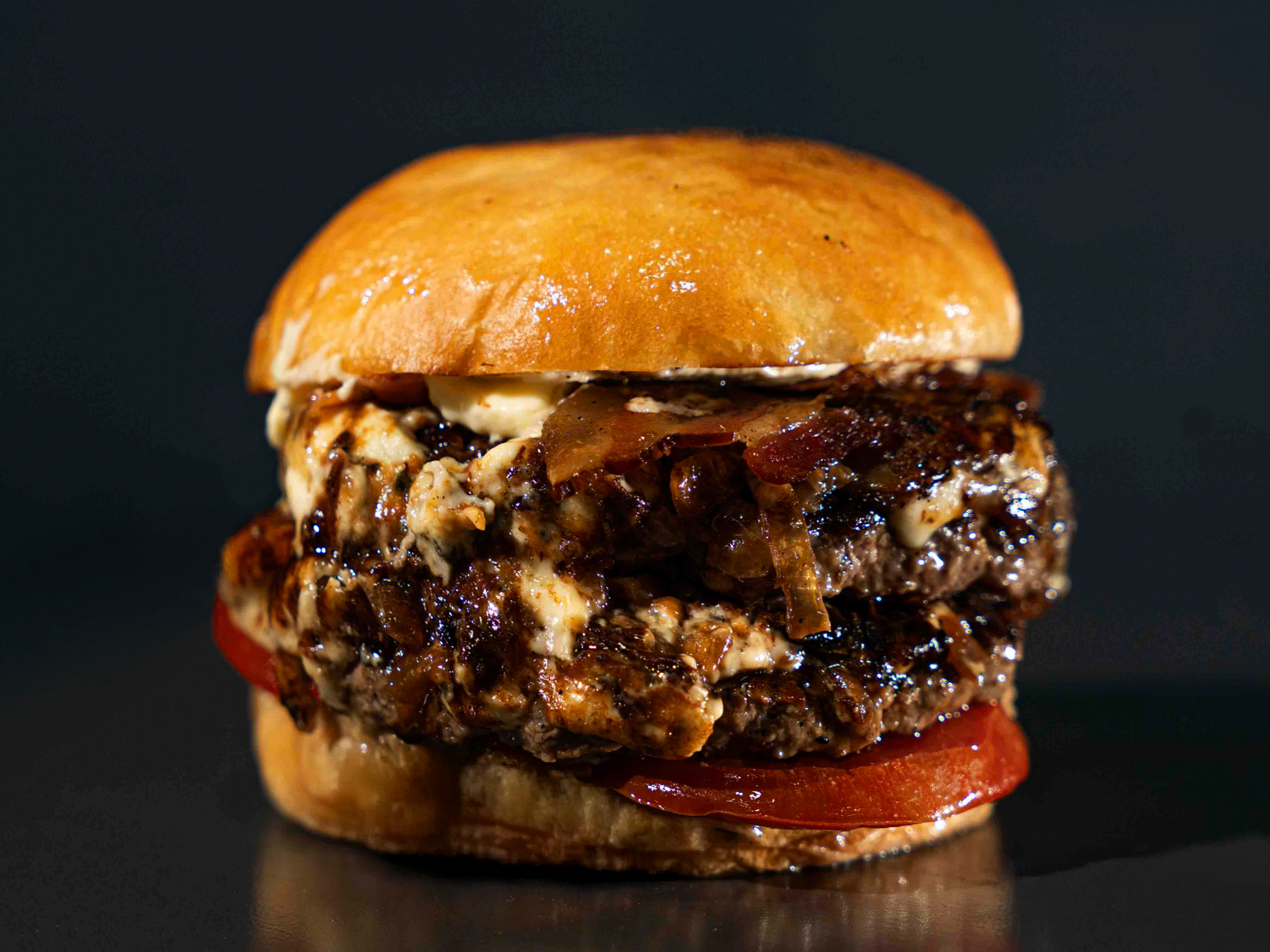 Blue Bacon burger (NUEVA) Compartir Pan de papa, tomate, medallón 120gr, doble queso azul, doble panceta, cebolla caramelizada y mayo. Sale con papas fritas y nuestro alioli insignia de regalo! Presentaciones Seleccioná una opción.SIMPLE$10.900DOBLE$12.900TRIPLE$14.900 Personalizá tu selección Las siguientes opciones aplican para cada producto agregado. Sazona tus papas sin costo Seleccioná las opciones que quieras.Sazonamos tu guarnición de papas fritas Sazonamos tu guarnición de papas fritas, con una mezcla de condimentos riquisima, si, pica pero tranqui! Mejora tu guarnición Seleccioná las opciones que quieras.Papas animal style Sobre la guarnición se agrega, cebolla caramelizada, salsa cheddar, salsa golden y cebollita de verdeo. No dejes de probarlas con el descuento!! $3.000$2.700 10% OFF Papas american style Sobre la guarnición se agrega, salsa cheddar, trozos de panceta dorada y cebollita de verdeo. $2.500 Aderezo extra Seleccioná las opciones que quieras.Alioli marca insignia de la casa. Aderezo a base de berenjenas ahumadas. $700 EXTRAS Seleccioná las opciones que quieras.Medallon de 120 gr + doble cheddar milkaut$3.500 Observaciones 0 / 150